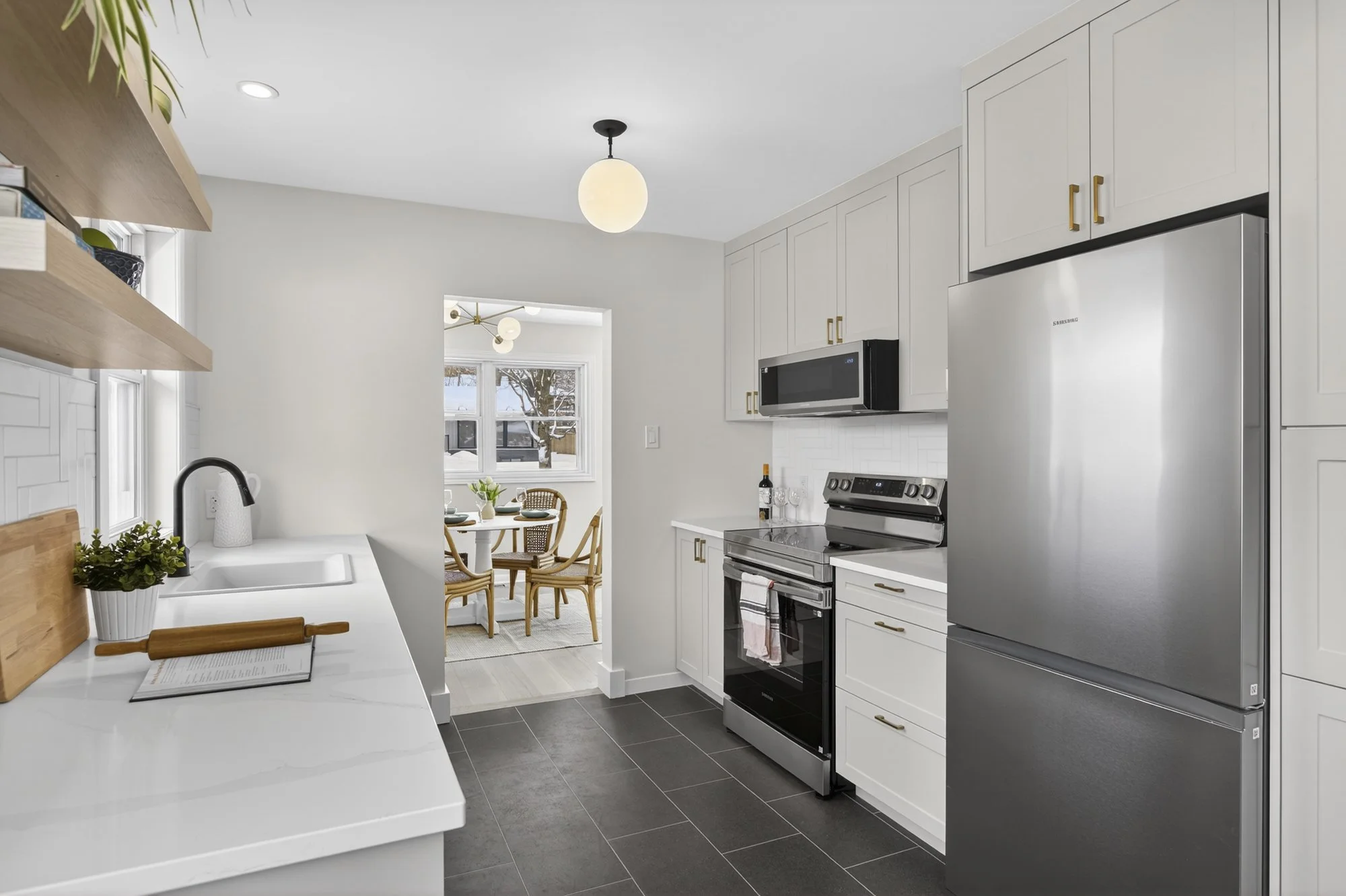 This bright and spacious three-bedroom bungalow presents a turn-key opportunity, having undergone extensive renovations throughout. Key updates include a new kitchen with all-new appliances, a new bathroom, new engineered hardwood flooring, updated insulation, a new furnace, and new lighting fixtures. The lower level offers a newly renovated, bright rec-room featuring large windows, pot lights, and new carpeting. This exceptional family home is conveniently located just steps from the hospital and schools, with easy access to downtown. The exterior provides a mostly fenced yard with new flagstone steps and a pathway, offering a blank canvas for a private outdoor living space. Home Inspection and List of Updates available.